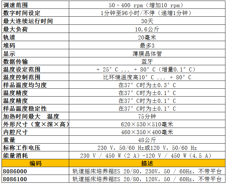 軌道振蕩培養(yǎng)箱ES-20 80規(guī)格:
